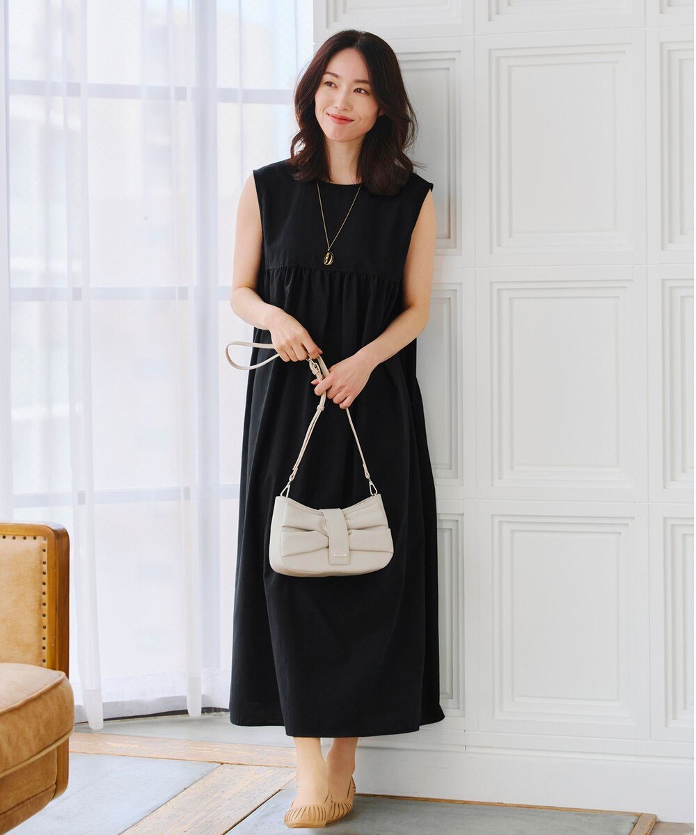 【洗える】後ろリボンギャザーワンピース