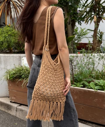 マクラメ編みが春夏にぴったり♡プラスワンするだけでワンランク上のコーデに■デザインざっくりと編まれたマクラメが涼しげな印象に。プラスするだけで、シーズンムードを高めてくれます♩大胆に施されたフリンジも、コーデのアクセントにぴったり!巾着付きなので、中身が見えないのも嬉しいポイント◎ショルダーにカラビナがついているので、お好みのキーホルダーを付けるのも♡※巾着:縦27㎝、横25センチ▼気になる商品をお気に入り登録ハートをクリックして《お気に入り登録》がオススメです!※画像の商品はサンプルを使用しております。実際の商品と若干の仕様が変更になる場合がございますので、予めご了承の上ご注文くださいますようお願いいたします※屋外の光や照明の当たり具合で、実際の商品の色味とカラー別画像の色味に若干の違いが発生する場合がございます。詳細画像と併せてご確認の上、ご注文いただきますようお願い致します。※独自のタイムセールなどの施策により、実店舗と価格差が発生する場合がございます。※実際の店舗在庫につきましては、各店舗に直接お問い合わせください。